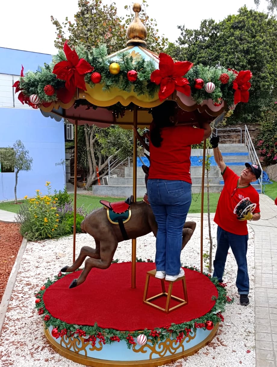 Si buscas una escenografĆa navideƱa impactante y diferente, nuestro Carrusel NavideƱo de PapĆ” Noel PerĆŗ con Rodolfo el Reno es la atracción perfecta para centros comerciales, municipalidades, eventos corporativos y activaciones de marca.